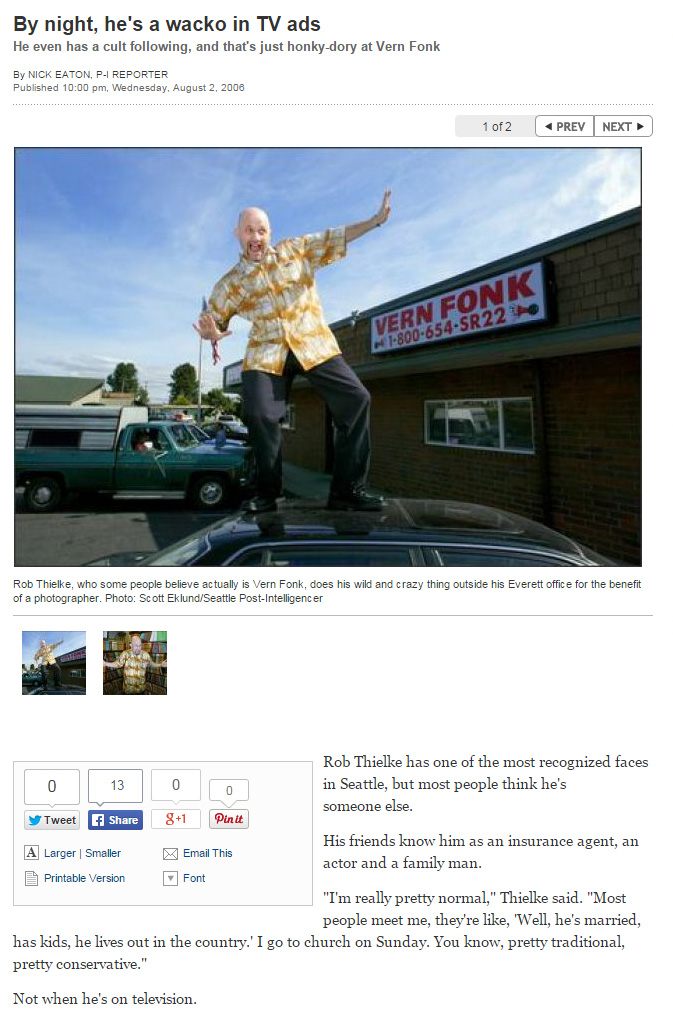 8.2.06 · Seattle P-I · features ➤ Vern Fonk’s crazy commercials