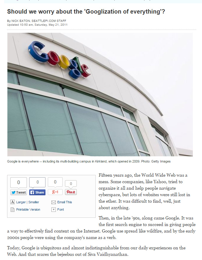5.21.11 · seattlepi.com · features ➤ The ‘Googlization’ of everything
