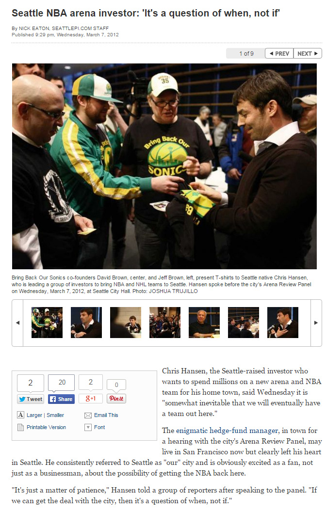 3.7.12 · seattlepi.com · reporting ➤ Sonics homecoming inevitable
