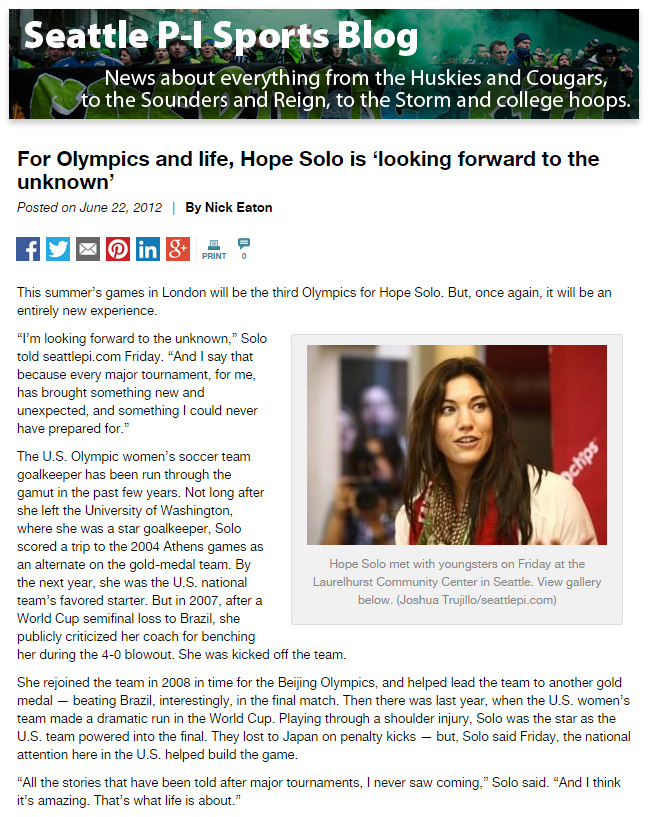 6.22.12 · seattlepi.com · features ➤ Hope Solo looks toward ‘unknown’