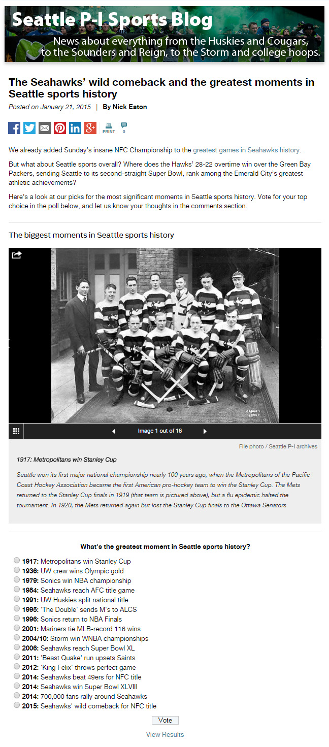 1.21.15 · seattlepi.com · features ➤ Greatest Seattle sports moments