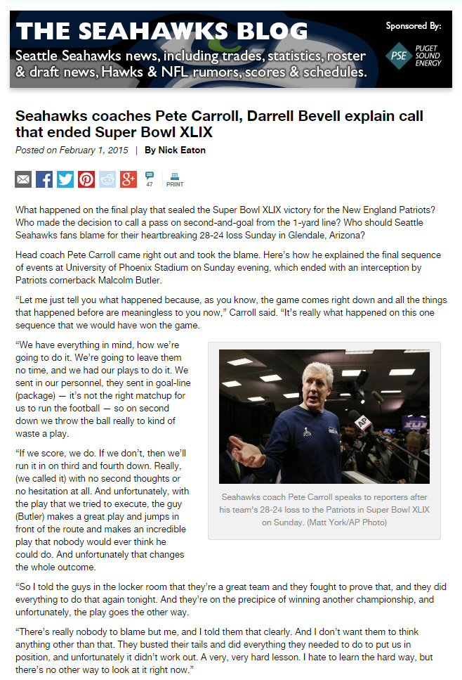 2.1.15 · seattlepi.com · reporting ➤ Coaches explain ill-fated SBXLIX pass
