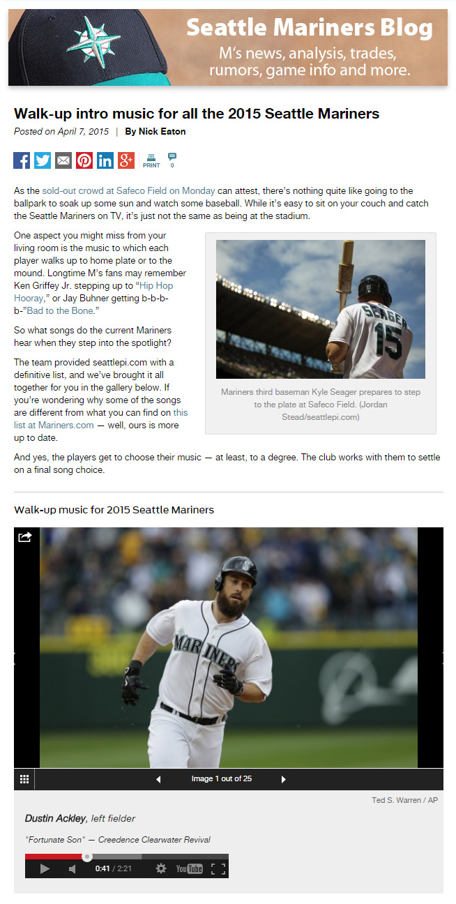 4.7.15 · seattlepi.com · features ➤ Walk-up music for the Mariners