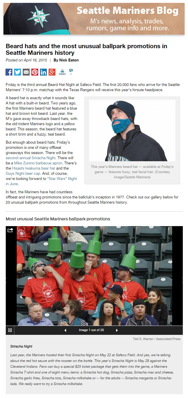 4.16.15 · seattlepi.com · features ➤ Unusual M’s ballpark promotions